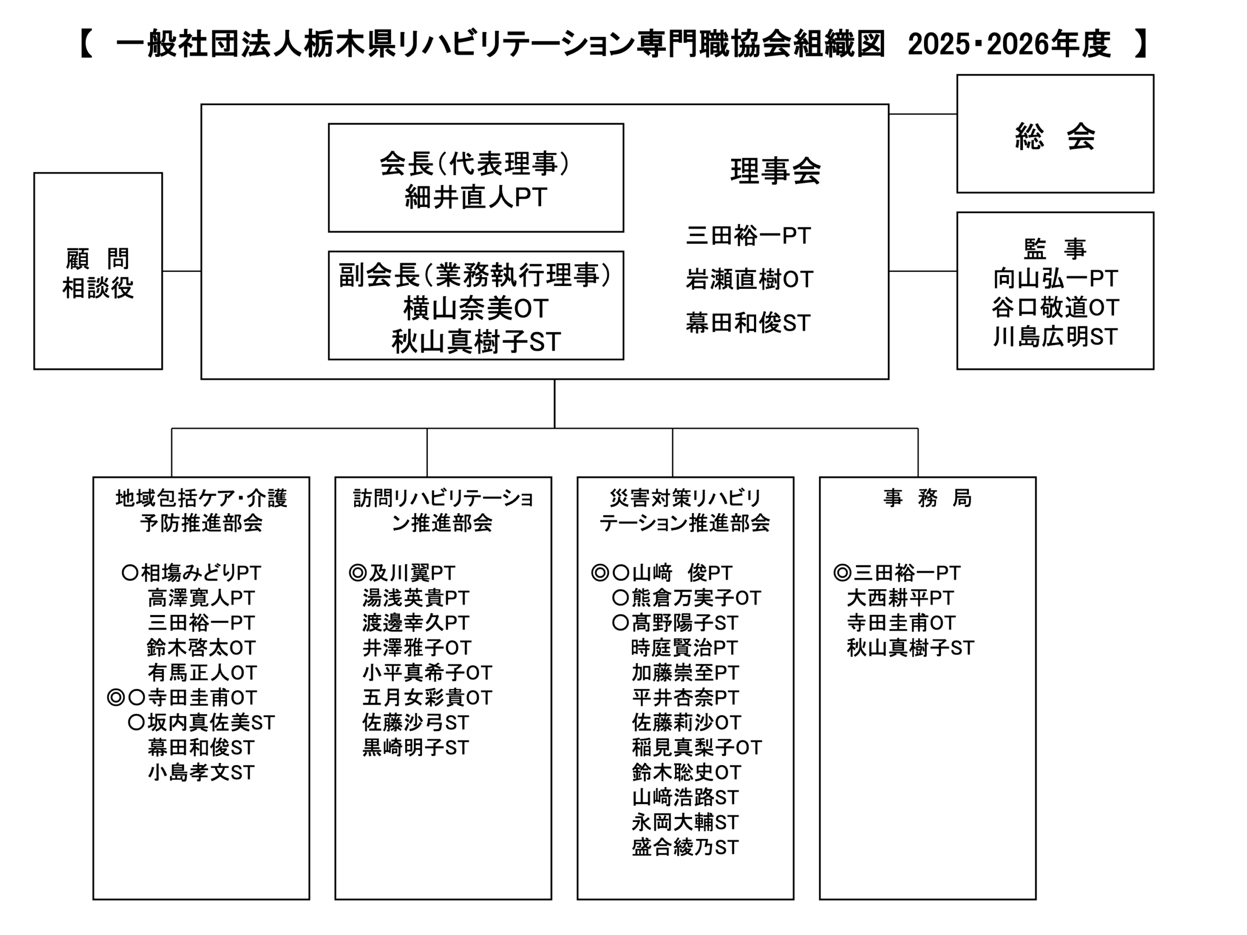 一般社団法人栃木県リハビリテーション専門職協会組織図 2024年度